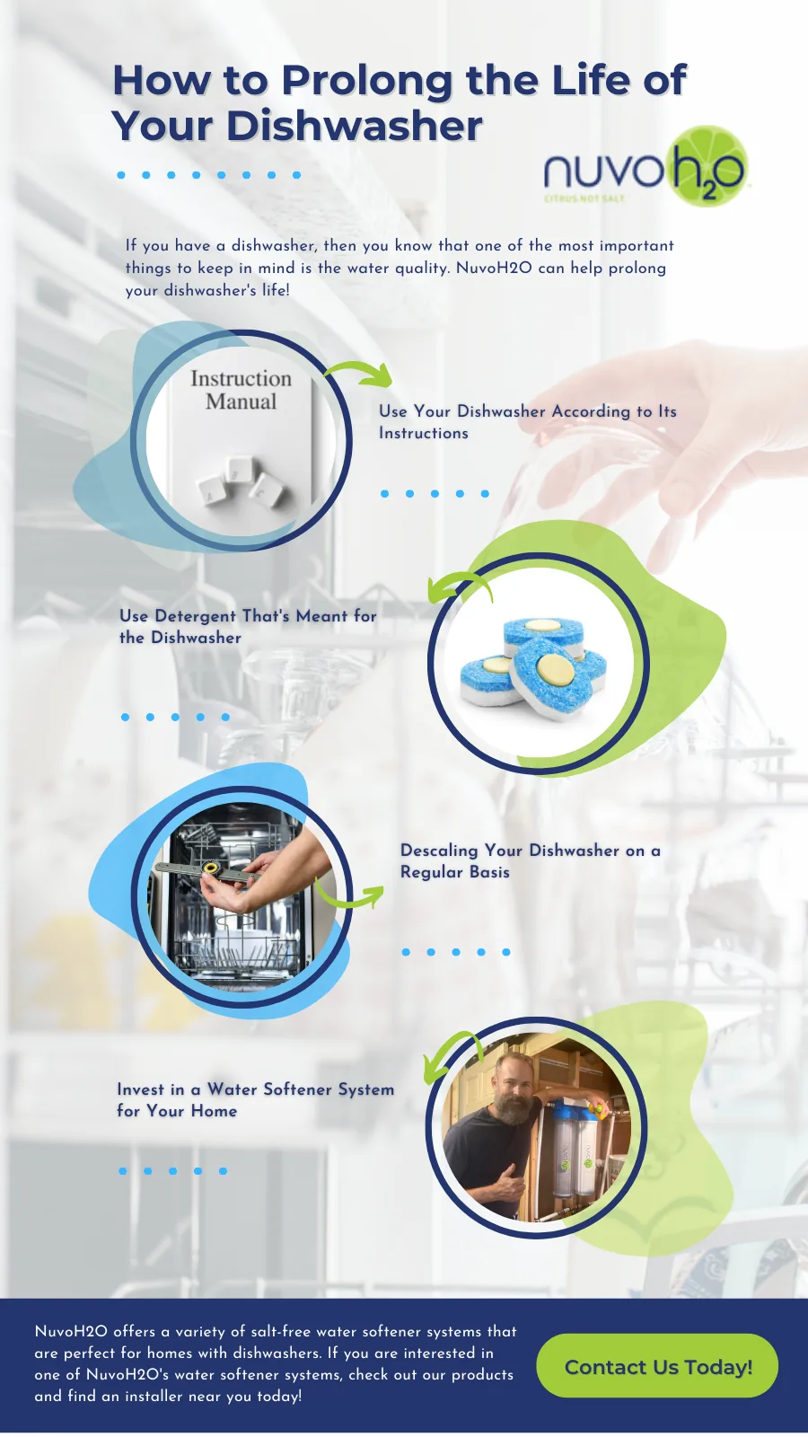 If you have a dishwasher, then you know that one of the most important things to keep in mind is the water quality. Hard water can shorten the lifespan of your dishwasher and lead to all sorts of problems, from decreased performance to mineral buildup. That's why a water softener is a must-have for anyone with a dishwasher. In today's blog, NuvoH2O will talk about how to prolong your dishwasher's life and talk about our water softener products!